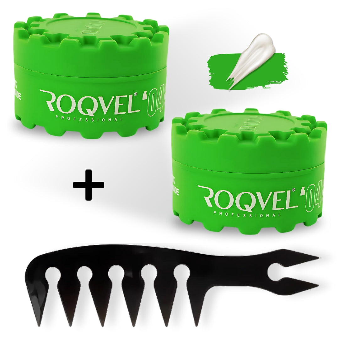 Haarwachs 2×150 ml Matte Pomade Green plus Stylingkamm. Starker Halt mit weichem, mattem Finish. Wasserbasiert, leicht einzuarbeiten, rückstandsfrei auswaschbar. Gibt Volumen und Kontrolle mit natürlicher Optik. Verklebt nicht, kein Fettfilm, kein steifes Haargefühl. Für definierte, moderne Styles über den ganzen Tag. Geeignet für kurzes bis mittellanges Haar. Der Kamm verteilt gleichmäßig und akzentuiert präzise Strähnen.